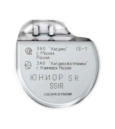 ЮНИОР SRЭлектрокардиостимулятор имплантируемый- канал телеметрии - 15 программируемых параметров - частотная адаптация - полуавтоматические тесты определения порогов стимуляции по амплитуде и длительности стимула - импеданс электрода - состояние батареи - статистика - сглаживание частоты стимуляции |